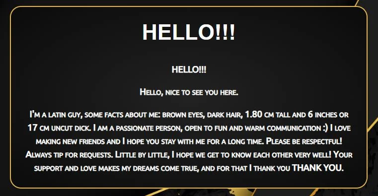 Welcome to the world of Andy, as my name says it, I am very naughty, my shows will be unforgettable for you, the limit places you, try me and you will see that I speak to you