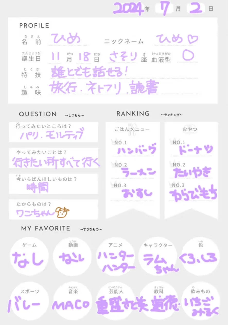 ひめのプロフ帳!💞