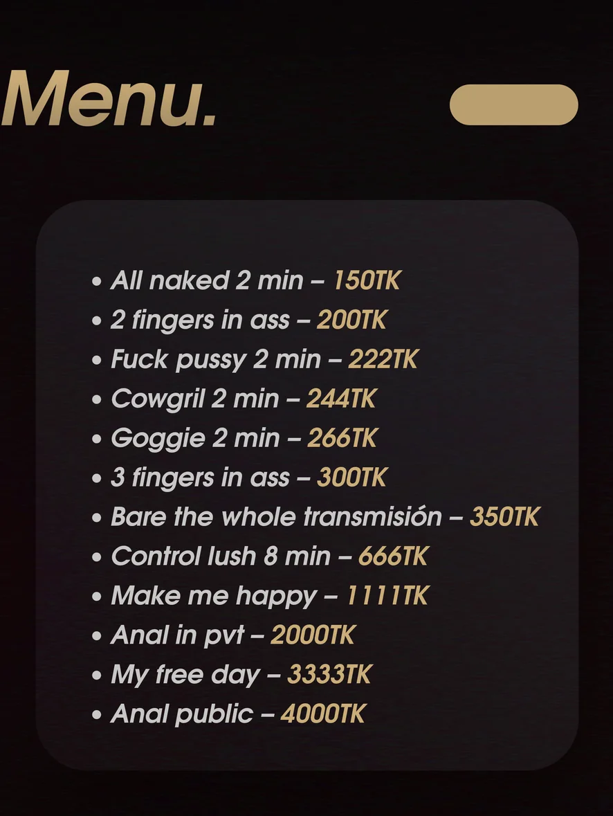 バックスタイル, アヘ顔, スパンキング, エッチなダンス, 割れ目, 下ネタ話, ストリップ, 顔射, 羞恥, トゥワーク, 中出し, アス・トュー・マウス, ディ ルドまたはバイブ, 手マン, アナル用おもちゃ, ディープスロート, オーガズム, アナル, ダブル挿入, 大人のおもちゃ, オナニー, パイズリ, オイルショー, 潮吹き, 騎乗位