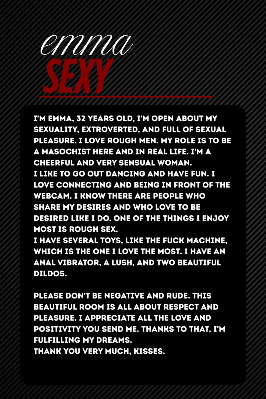 I am a new girl who wants to experience being a webcam model, I like sex, I am very open on that topic, I have a lot of experience in sexuality.