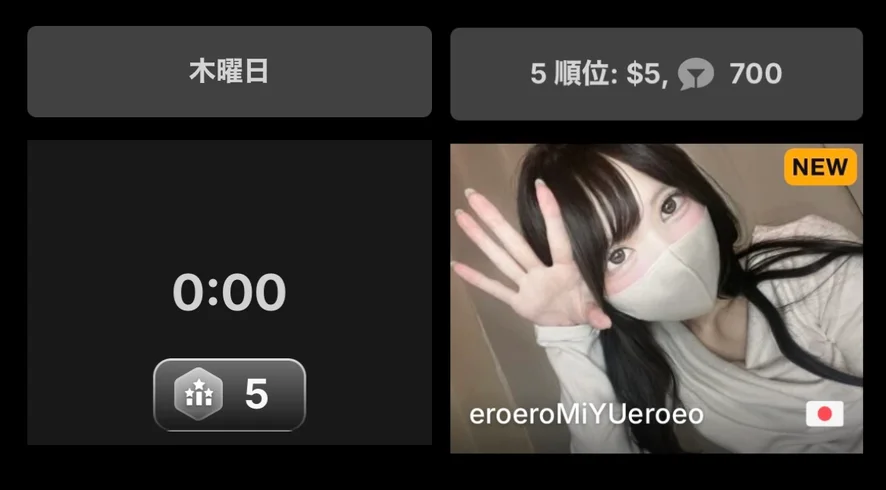 日本の法令に基づき、配信内容には性器の露出行為を含みません。